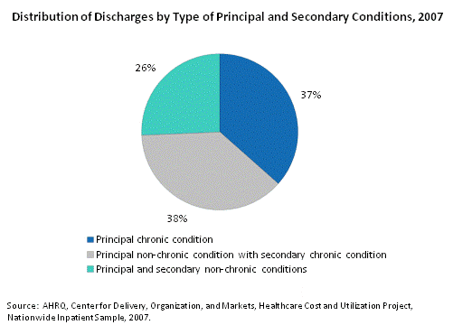 - Another 38 percent of all discharges had a secondary chronic condition that could complicate treatment and recovery for an acute condition (the reason for the hospital stay).