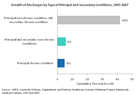 - Hospital stays for principal non-chronic conditions with a noted secondary chronic condition grew by 42 percent between 1997 and 2007.